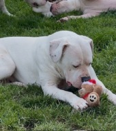 Pełna energii i wdzięku suka o doskonaej budowie i kobiecym wyrazie. Łączy w sobie siłę, elegancję i zrównoważony charakter.